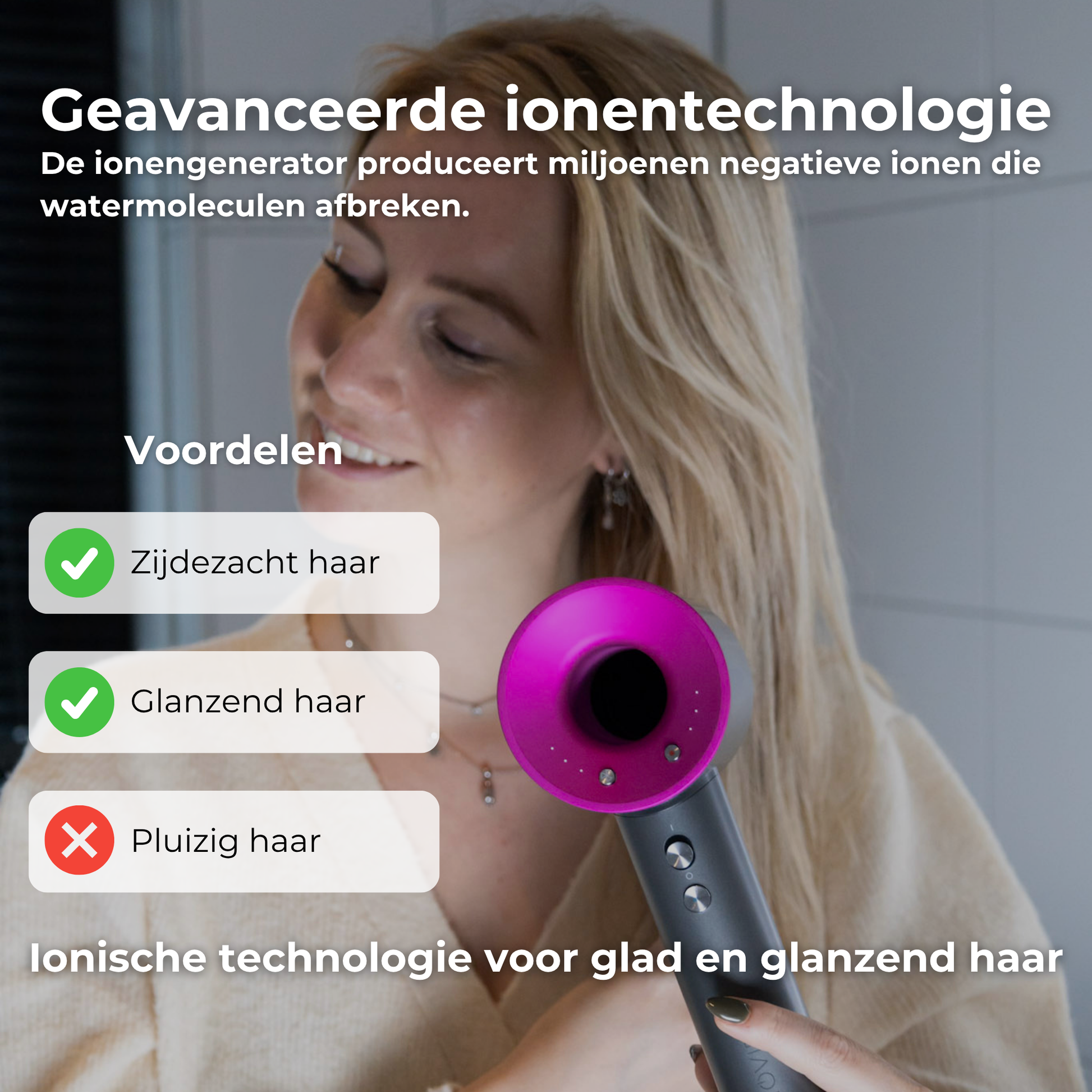 Absoluut! De föhn is ontwikkeld met een geavanceerde technologie die snel droogt zonder extreme hitte te gebruiken, waardoor het risico op hittebeschadiging aanzienlijk wordt verminderd. Dit maakt het veilig voor dagelijks gebruik en helpt je haar gezond te houden.
