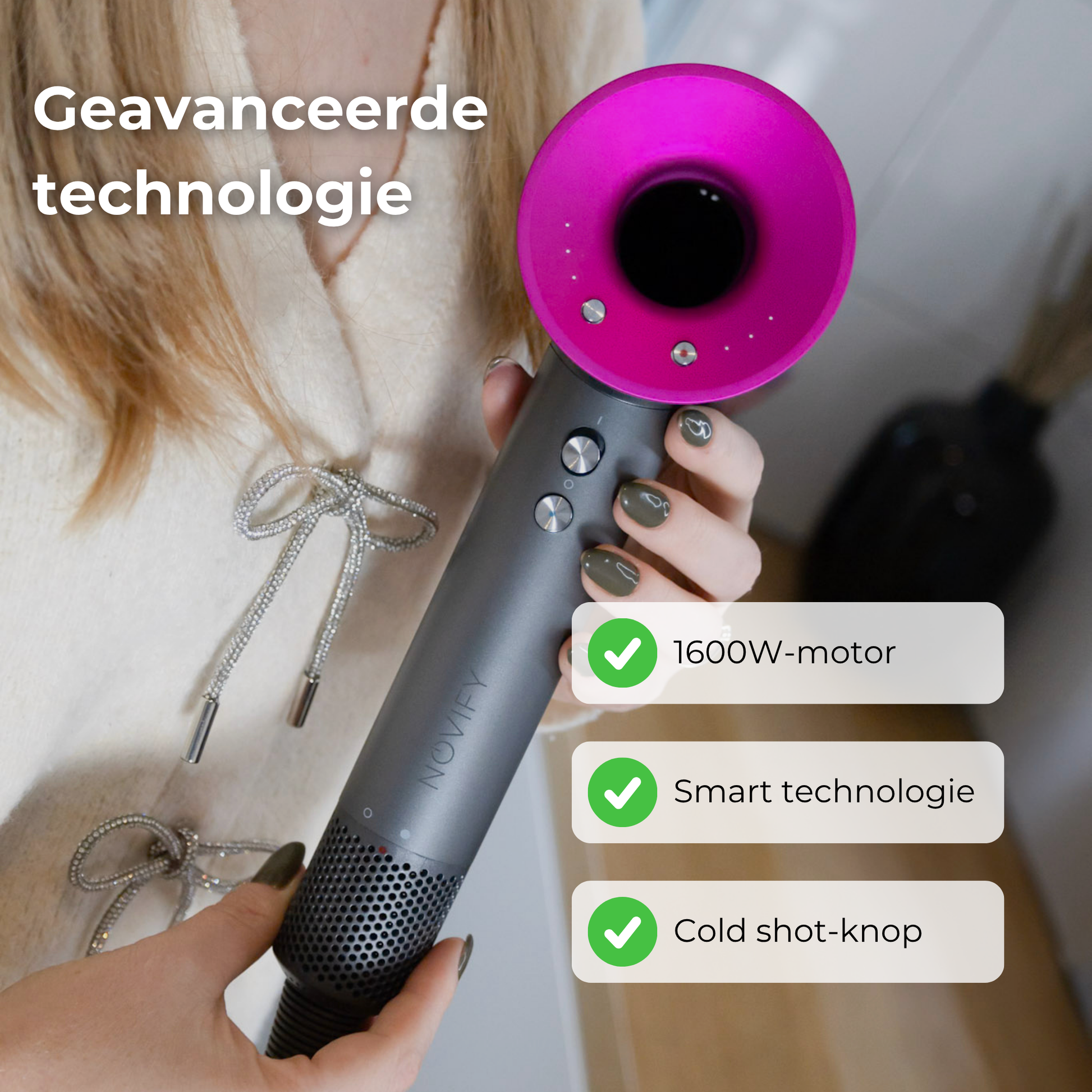 De NOVIFY AirStream onderscheidt zich door zijn geavanceerde technologie die krachtige prestaties levert zonder extreme hitte, waardoor het risico op hittebeschadiging vermindert en de gezondheid van je haar behoudt. Met zijn lichte gewicht van slechts 659 gram is het opmerkelijk draagbaar en gebruiksvriendelijk. De meegeleverde opzetstukken, zoals de Gentle Air opzetstuk, twee Stylingconcentrators, een Flyaway opzetstuk en een Diffuser, bieden een veelzijdige stylingervaring die aanpasbaar is voor alle haartypes en stijlen. Dit alles, gecombineerd met een strak design en een gebruiksvriendelijke interface, maakt de NOVIFY AirStream een topkeuze voor zowel professionele stylisten als voor dagelijks gebruik thuis.