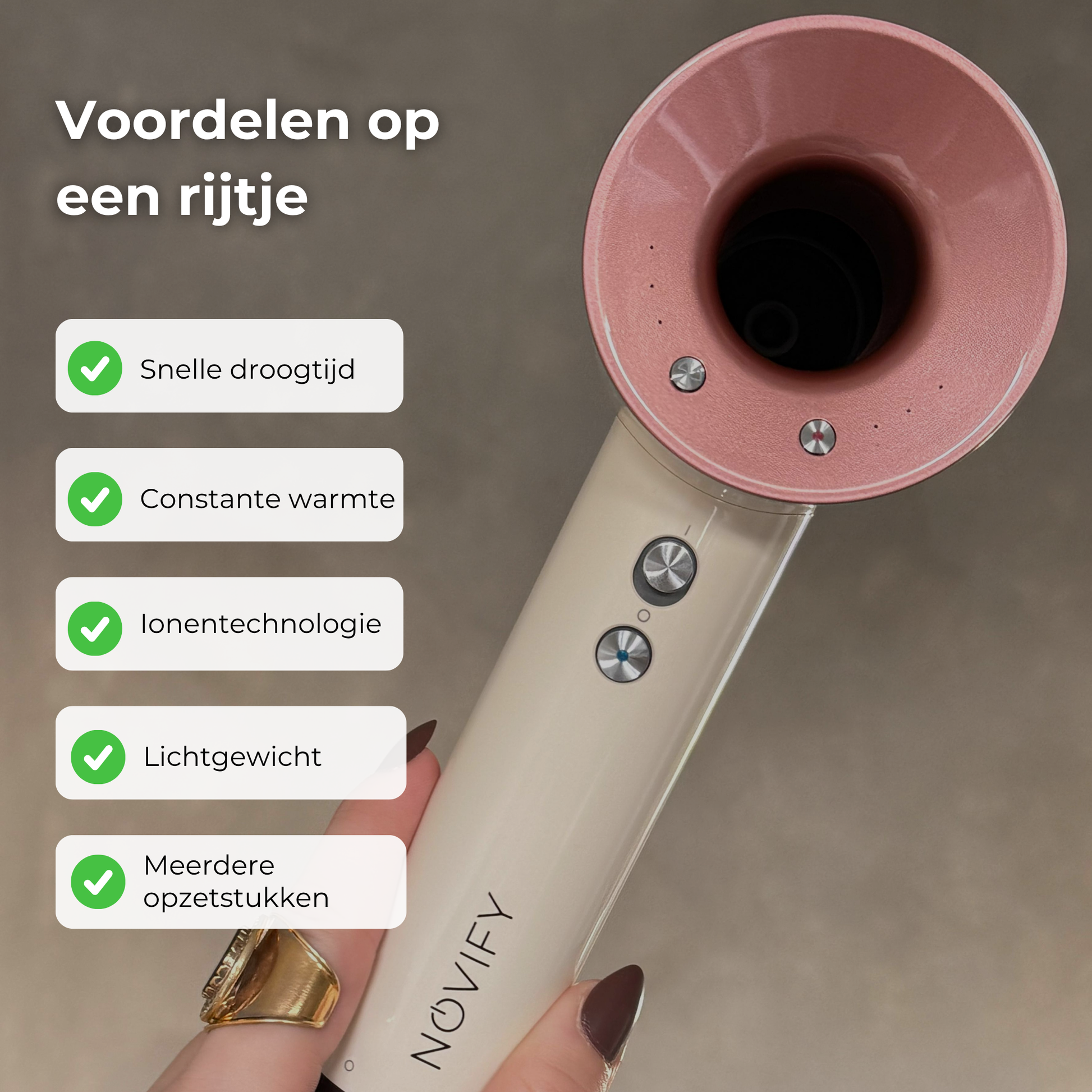 Bij de NOVIFY AirStream ontvang je een reeks veelzijdige opzetstukken voor al je stylingbehoeften: